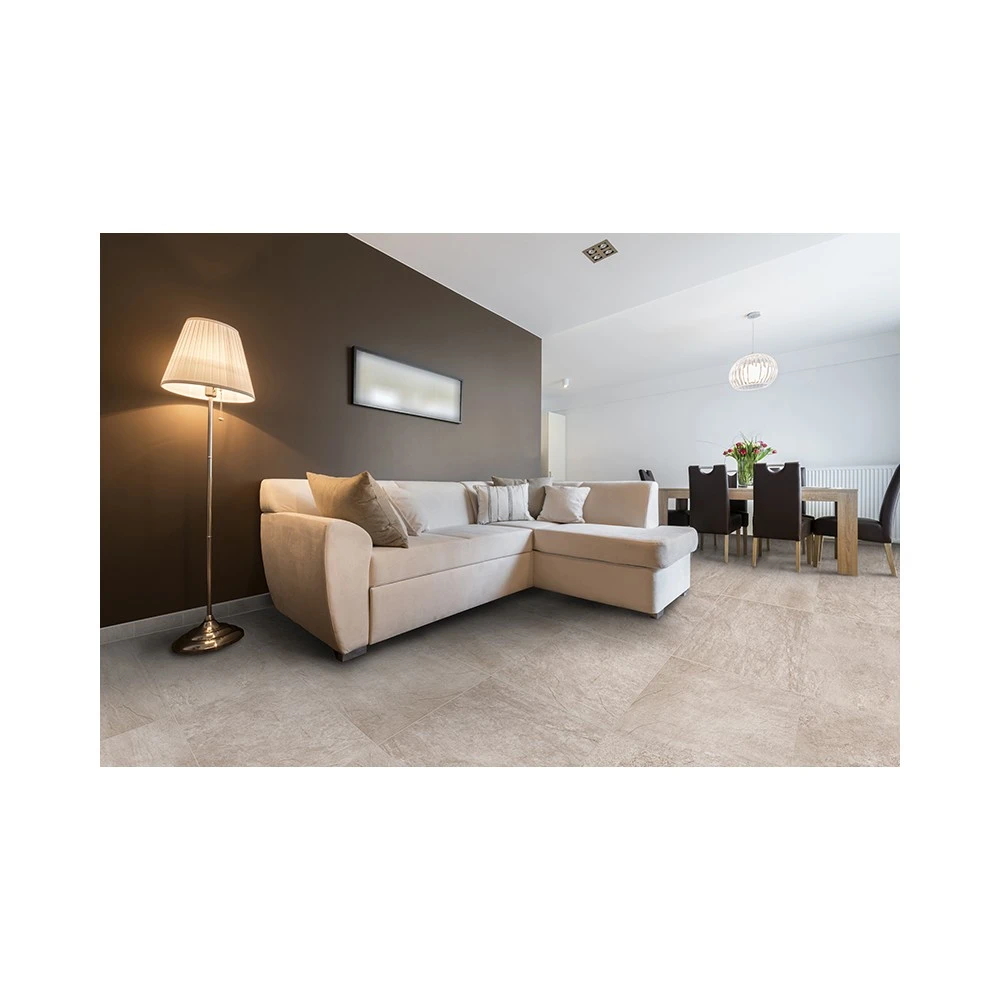 Flot slidstærk flise i beige, der er velegnet til alle rum i din private bolig. Flisen har en dejlig varm farve, som kan være baggrund for et pift til din stue eller køkken.