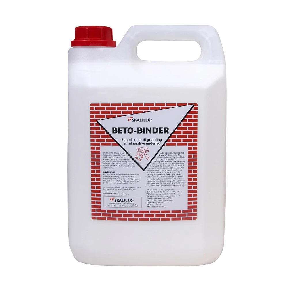 Skalflex Beto-Binder ensarter og forbedrer vedhæftning til stærkt sugende eller uens sugende underlag, samt øger styrken og elasticiteten af det påførte produkt.